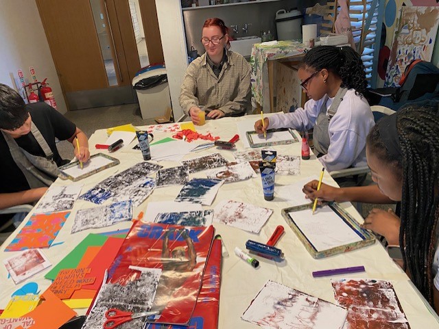 Within the art session I introduced the students to mono-printing, which created a relaxed environment for the students to discuss and explore their thoughts on the gallery space and how the Whitworth might encourage more young people to visit the space.